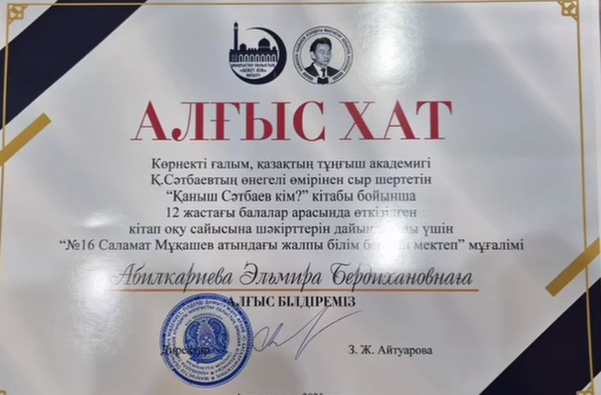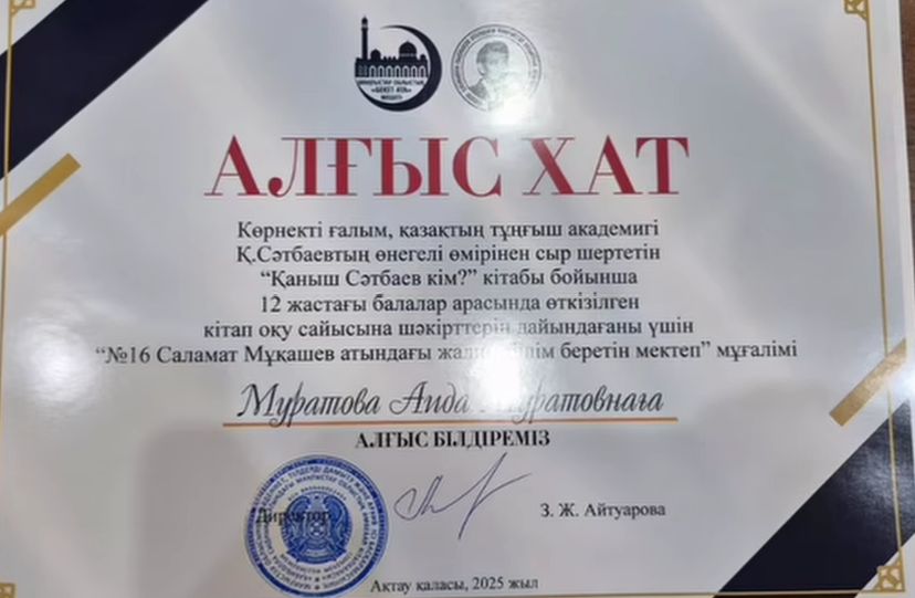 «Адал азамат» біртұтас тәрбие жобасы «Балалар кітапханасы» бағдарламасы аясында ҚМДБ Маңғыстау облыстық орталық «Бекет ата» мешіті және Қ. Сыдиықов атындағы Маңғыстау облыстық кітапханасының ұйымдастыруымен «Артық білім кітапта…» атты 12 жастағы жасөспірімдер арасында кітап оқу сайысы өтті. Сайыс — көрнекті ғалым, қазақ халқының тұңғыш академигі, Қазақ КСР Ғалым Академиясының тұңғыш президенті Қаныш Сәтбаевқа арналған. С. Хасанның «Қаныш Сәтбаев кім?» атты кітабын талқылау.