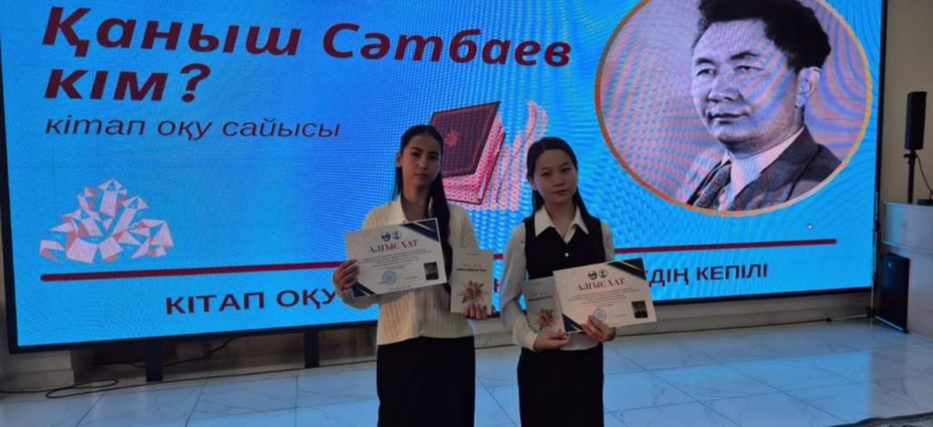Қатысқандар: 7«а» сынып оқушысы А. Манарбек, пән мұғалімі А. Мұратова, 7«ж» сынып оқушысы С. Мұқаш, пән мұғалімі Э. Абилкариева және кітапхана меңгерушісі Л.Ш.Таскымбаева. Қатысқандар алғыс хат және сыйлықтармен марапатталды.