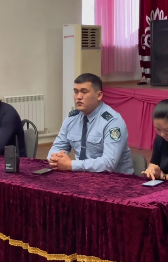 «Адал азамат» Біртұтас тәрбие бағдарламасының “Құқықтық тәртіп” айлығы аясында “Заң және тәртіп” тақырыбында жиналысты Ақтау қаласы ПБ ККб ЮПб кәмелетке толмағандар істері жөніндегі полиция аға лейтенанты Бердихан Акжол Куандықұлы, КПБ аға жедел уәкілі, полиция капитаны
